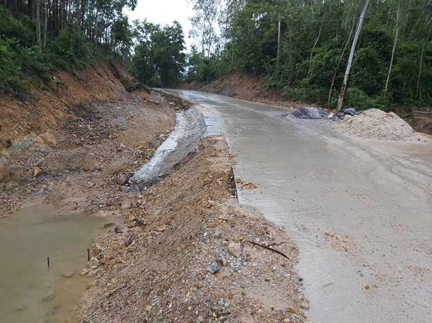 Đến thời điểm hiện tại, Công ty CP Đầu tư và Xây dựng Đại An vẫn đang thi công đã hoàn thiện hơn 8km đường. Tuy nhiên, theo phản ánh của người dân sau vài trận mưa, người dân phát hiện trên tuyến đường đã thi công xong có nhiều cục đất lớn lẫn với lớp bê tông của mặt đường, có những cục to bằng nắm tay.