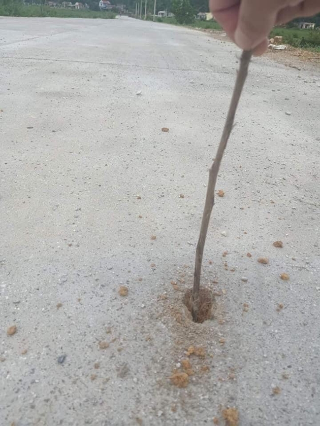Nhiều người tò mò, dùng cành cây chọc xuống để kiểm tra, bất ngờ phát hiện phía dưới toàn là đất đỏ. Cho rằng Công ty CP Đầu tư và Xây dựng Đại An thi công kém chất lượng, có dấu hiệu rút ruột công trình, người dân đã quay lại toàn bộ sự việc và đưa lên mạng xã hội.