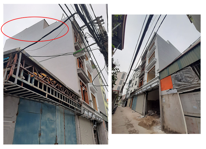 Thuộc khu vực ngõ 255 Bồ Đề, công trình số 22 xây dựng với chiều cao 5 tầng, mật độ gần như toàn bộ diện tích, công trình có dấu hiệu xây không đúng với bản thiết kế ban đầu.