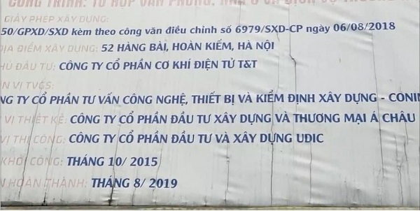 Theo tìm hiểu được biết, dự án Tổ hợp văn phòng, nhà ở và dịch vụ thương mại tại địa chỉ số 52 Hàng Bài, phường Hàng Bài, quận Hoàn Kiếm của Tập đoàn T&T làm chủ đầu tư đã từng bị UBND quận Hoàn Kiếm xử phạt vì hành vi xây dựng sai phép nhưng không hiểu vì lỳ do gì đến nay sai phạm vẫn ung dung tồn tại.