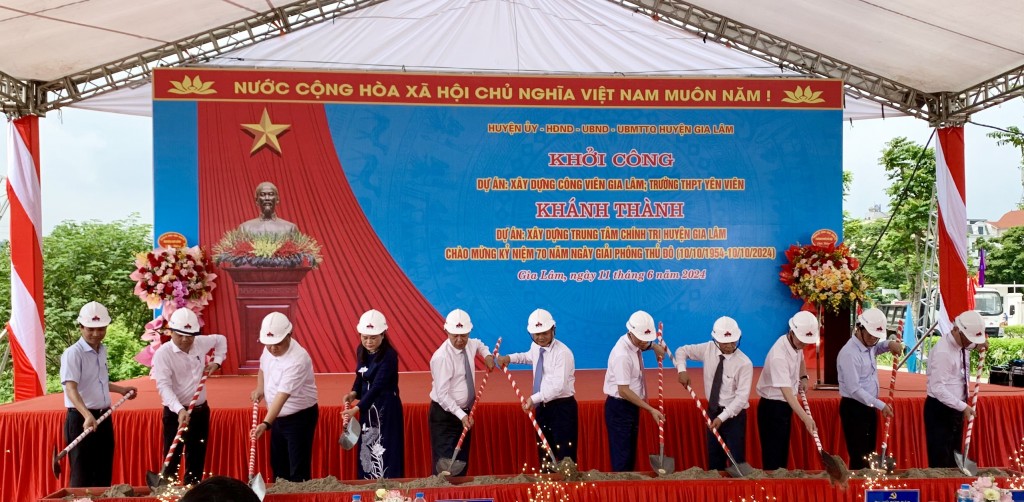 Sáng 11/6, Huyện ủy, HĐND – UBND huyện Gia Lâm đã khởi công xây dựng hạ tầng khu công viên, vườn hoa, hồ nước (khu 31ha); Xây dựng trường THPT Yên Viên và khánh thành Trung tâm chính trị huyện. Các hạng mục này được thực hiện có ý nghĩa quan trọng, thiết thực chào mừng kỷ niệm 70 năm Ngày giải phóng Thủ đô (10/10/1954-10/10/2024).